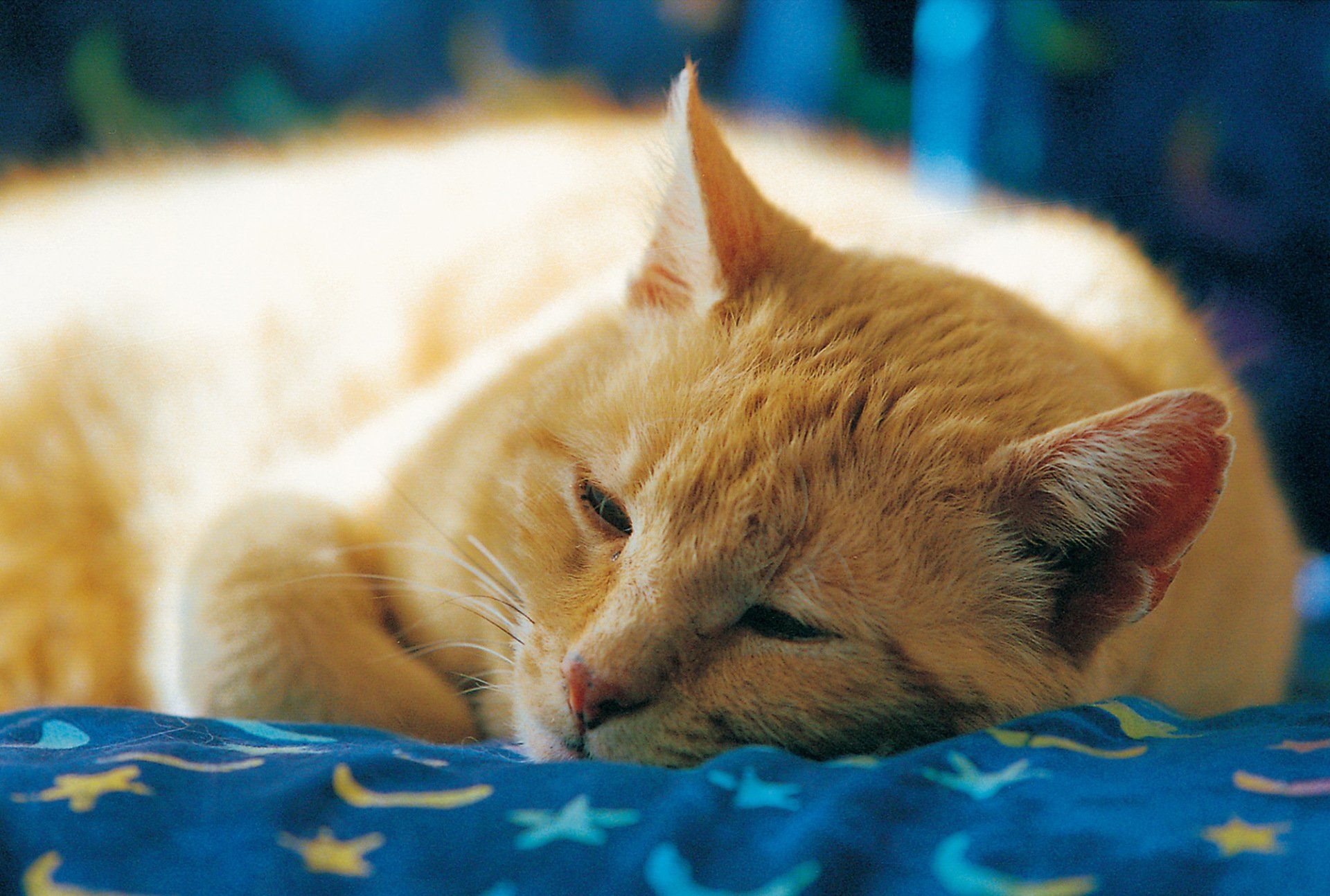„Was geht in rothaarigen Katern vor, wenn sie sich auf tiefblaue Schlummertücher kuscheln, deren Mond-und-Sterne-Muster allein fast schon exquisite Träume garantieren? ..."